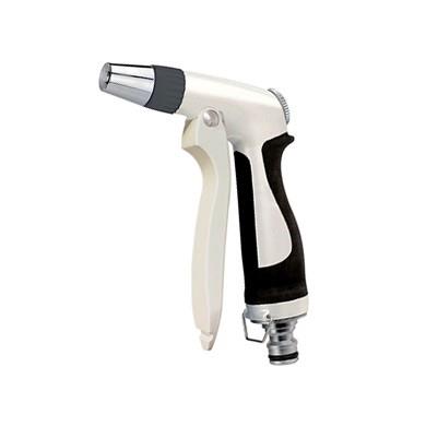 Die Colortap Deluxe Metall-Spritzpistole ist ein hochwertiges Werkzeug für die anspruchsvolle Gartenbewässerung. Dank der robusten Konstruktion aus einer Zinklegierung ist sie besonders langlebig und widerstandsfähig gegenüber täglicher Beanspruchung. Der ergonomisch geformte Handgriff mit weicher Gummierung sorgt für einen sicheren Halt und komfortables Arbeiten, selbst bei nassen Händen. Durch einfaches Drehen der Düse lässt sich das Sprühbild stufenlos vom feinen Sprühnebel bis zum kraftvollen Punktstrahl einstellen. Ein praktischer Feststellhebel ermöglicht zudem eine dauerhafte Bewässerung ohne permanentes Drücken des Abzugs.